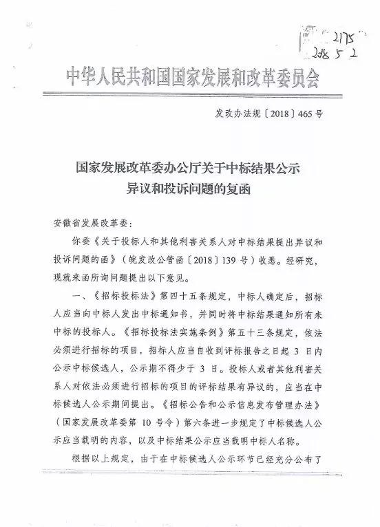 國家發(fā)展改革委辦公廳關(guān)于中標(biāo)結(jié)果公示異議和投訴問題的復(fù)函