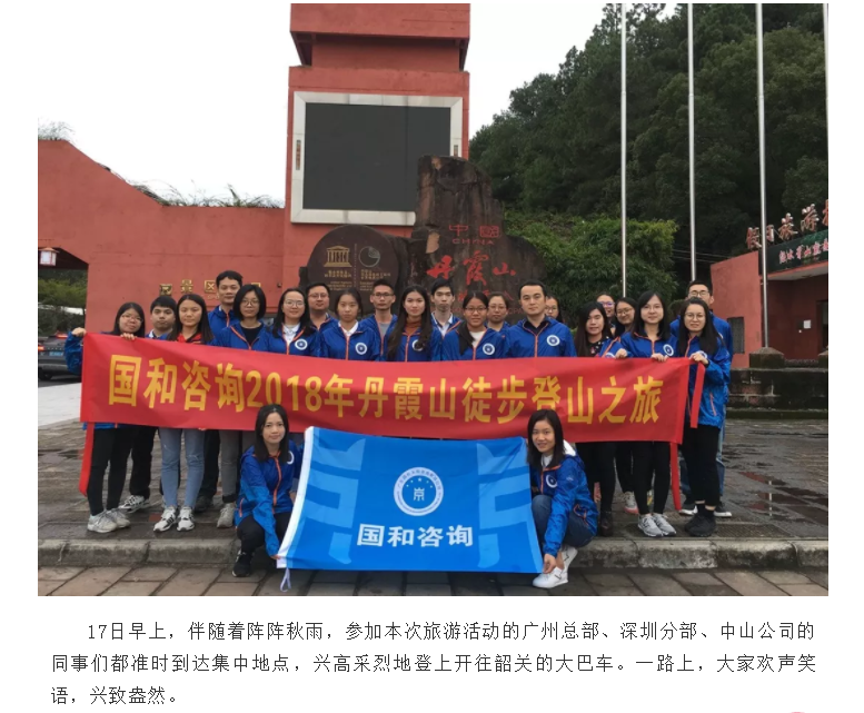 為了豐富員工的業余生活,緩解工作壓力,促進員工之間的溝通與交流,提高團隊協作和凝聚力,國和咨詢于11月17至18日組織開展了2018秋季丹霞山徒步登高旅游活動。